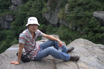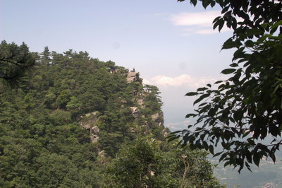 第二天一大早,我们吃过早饭,就向着我们的目标出发,风驰一个多小时,经过多达400个崎岖多弯的山路,众人期盼的庐山山顶到啦!上山车速过快,致使我们好几个同事呕吐,我也快顶不住了。乘坐景区内的中巴车,我们来到了我们庐山游的第一站:花径草庐遗址。相传白居易的《大林寺桃花》这首诗就写于此处:“人间四月芳菲尽,山寺桃花始盛开。长恨春归无觅处,不知转入此中来。”