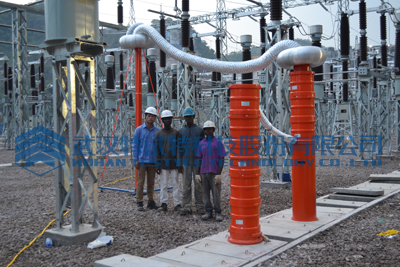 TE-BXZ变频谐振试验装置(TE-BXZ800KVA/400KV)是武汉特试特很早就致力于研发及生产的一款成熟变频谐振耐压试验装置,在电力试验中被广泛的采纳。根据加纳布维水电站电压等级、容量等实际情况,我公司就针对34.5KVA/200MVA主变、161KV/160MVA、161KV/20MVA主变中性点以及161KV开关、母线等电气设备,量身定做了此套交流耐压试验装置,该装置具有便携、容量大、体积小等优点。公司专业技术人员通过数天的努力,克服了语言交流难、地理环境险恶、生活环境艰苦等困难。积极协助中国水电八局加纳布维项目部圆满完成了各项试验任务。