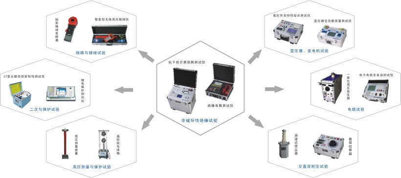 此类设备用于各种高压电气设备的绝缘介质损耗因数tgδ、电容量Cx的测量及变压器、电机、电缆、电抗器、发电机等设备和元件的绝缘电阻测量等。 电气设备绝缘的非破坏性试验是指在较低电压下,或用其它不会损伤绝缘的办法来测量绝缘的各种特性,进而判断绝缘缺陷的试验方法。主要包括测量绝缘电阻、泄漏电流和介质损失角(正切)三大项目。