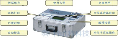 仪器自带高效能充电电池,自身可为测试部分提供工作电源,无需外部供电。也可由外部交流220V电源供电,方便用户在各种场合使用。